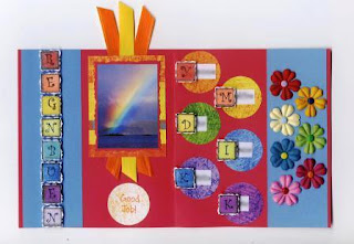 Dette er noe av det morsomste jeg har laget noen gang, tror jeg. Jeg fikk i oppdrag å lage et kort til en kollega som skulle slutte fordi hun ble pensjonist. Men akkurat den dagen ville tilfeldighetene det slik at det var blitt lagt ut en ny oppskrift på The Scrapbook Lounge, og den måtte jeg jo bare prøve meg på. Så derfor ble det bok av det i stedet. De første sidene handler om hva hun kan gjøre når hun blir pensjonist. De siste sidene en hilsener fra alle de som jobber på de seks avdelingene i enheten vår.