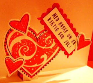 Jeg har kuttet et lite hakk i selve kortet og brettet dette innover. På den måten får jeg hjertet til å stå litt ut fra selve kortet.
