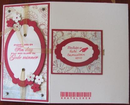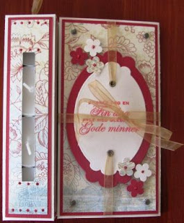Dette er bak på kortet mens det er åpent så man ser forsida også. Ved å lime på dette på baksida, kunne jeg skjule båndet som er limt på med gluedots som ble ganske synlige gjennom det tynne båndet.