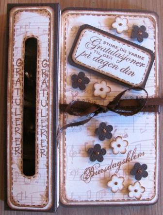 Forsiden på det brune kortet. Blomstene er limt på med limputer.
