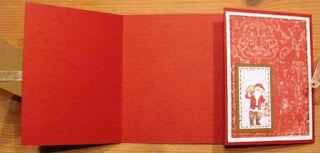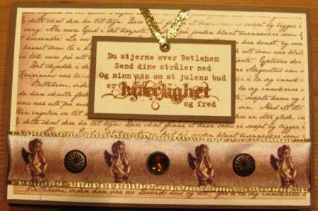 Dette kortet har åpningen midt på og blir holdt sammen med et bånd. Jeg har brukt begge sider på ett og samme mønsterark på dette kortet.